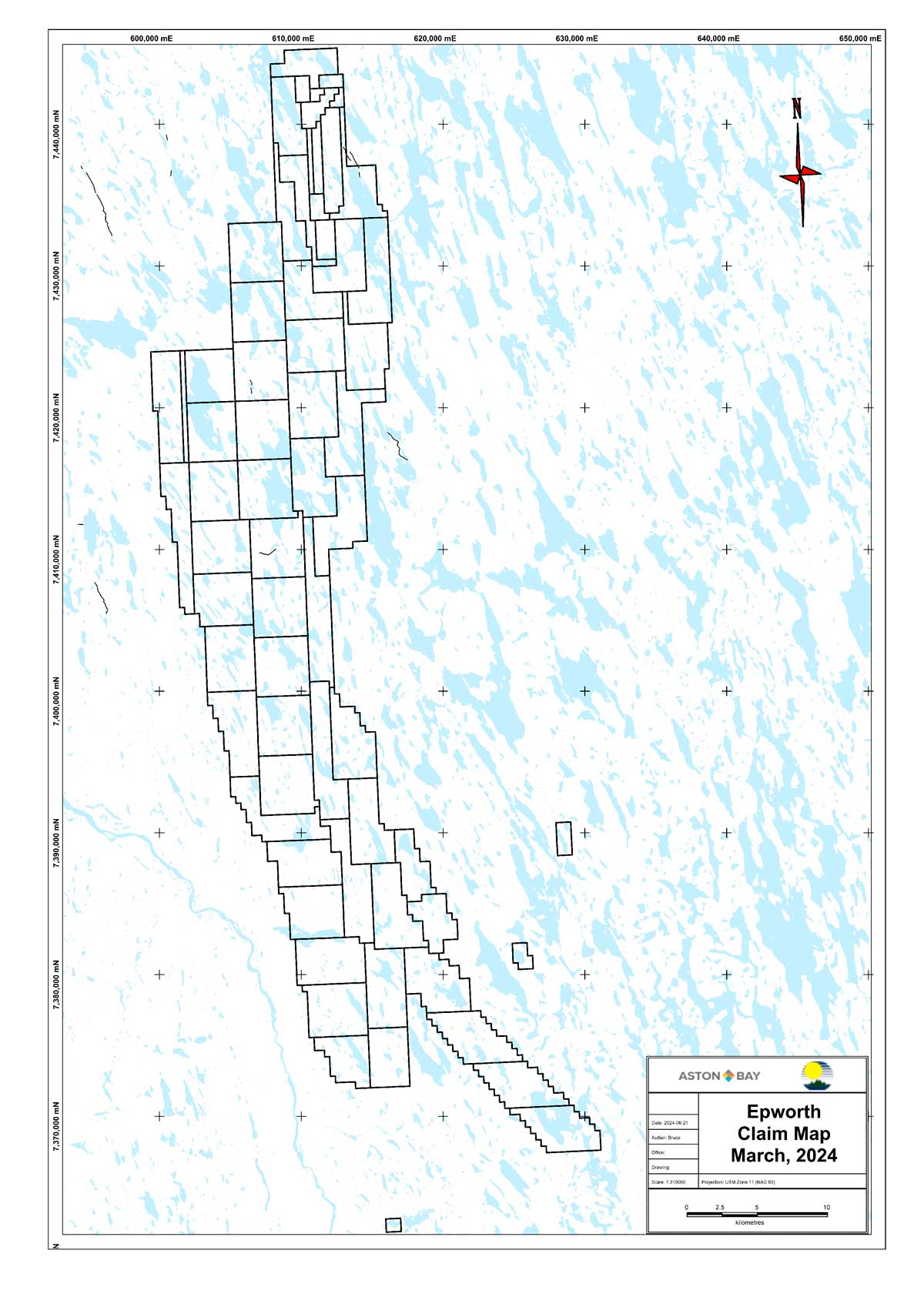 Mineralization at Epworth is similar in style to the mineralization in deposits of the Central African Copper Belt and Aston Bay’s Storm Copper Project. Over 74-kilometre (“km”) long trend of sediment-hosted style stratiform copper (“Cu”), silver (“Ag”), zinc (“Zn”) and cobalt (“Co”) mineralization. Chalcocite boulders at surface yield up to 61.2% Cu with 5600 grams per tonne (“g/t”) Ag in select rock grab samples from over 300 historic samples. Recent prospecting rock grab samples yielded up to 37.8% Cu, 27.4% Zn, 1100 g/t Ag, 3.0 g/t gold (“Au”) and 1700 ppm Co.